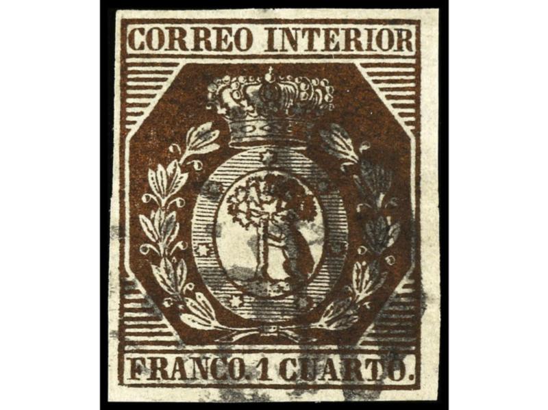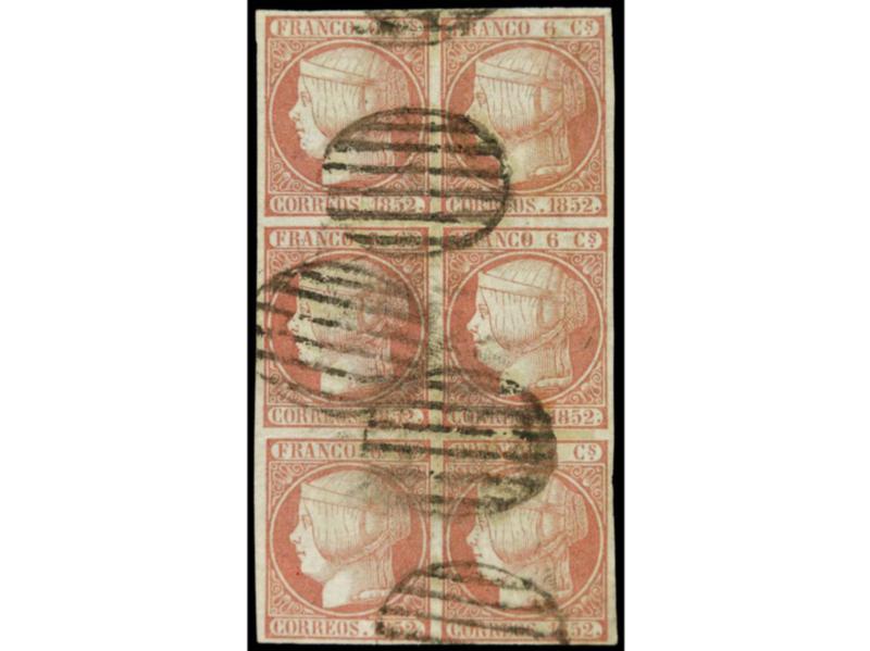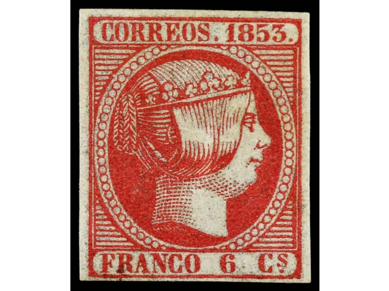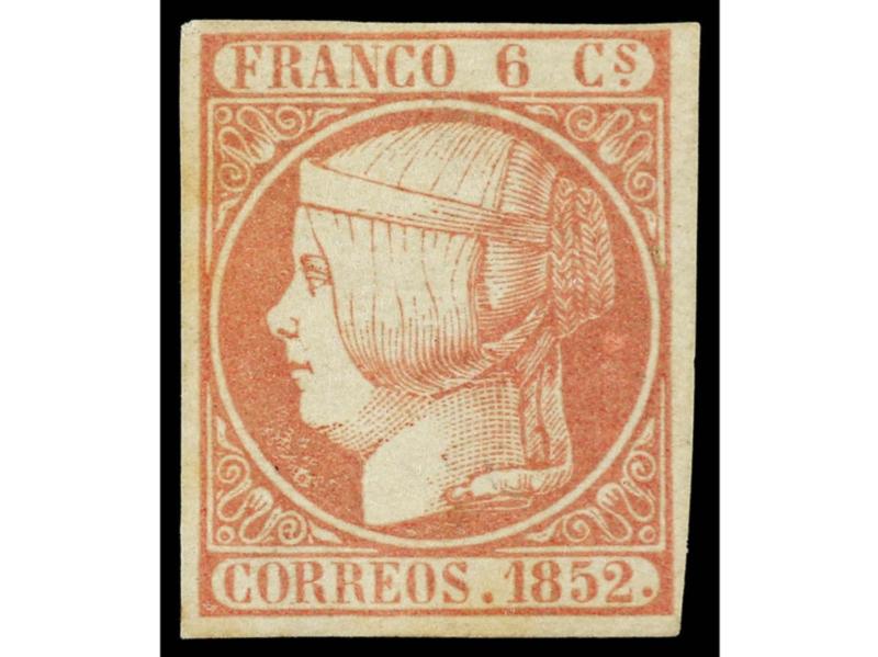 ESPAÑA. 6 cuartos rosa. Color muy intenso y márgenes completos. Muy buen ejemplar. Cert. COMEX. Ed.17. Cat. 600€.