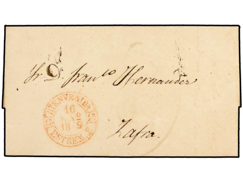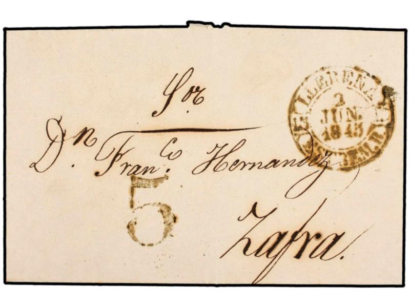 ESPAÑA: PREFILATELIA. 1845. Carta con fechador LLERENA/ESTREM. B. en negro. MAGNÍFICA.