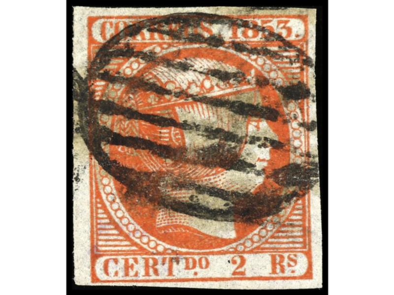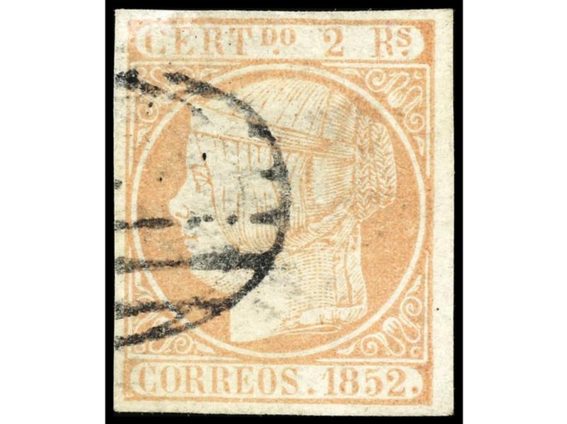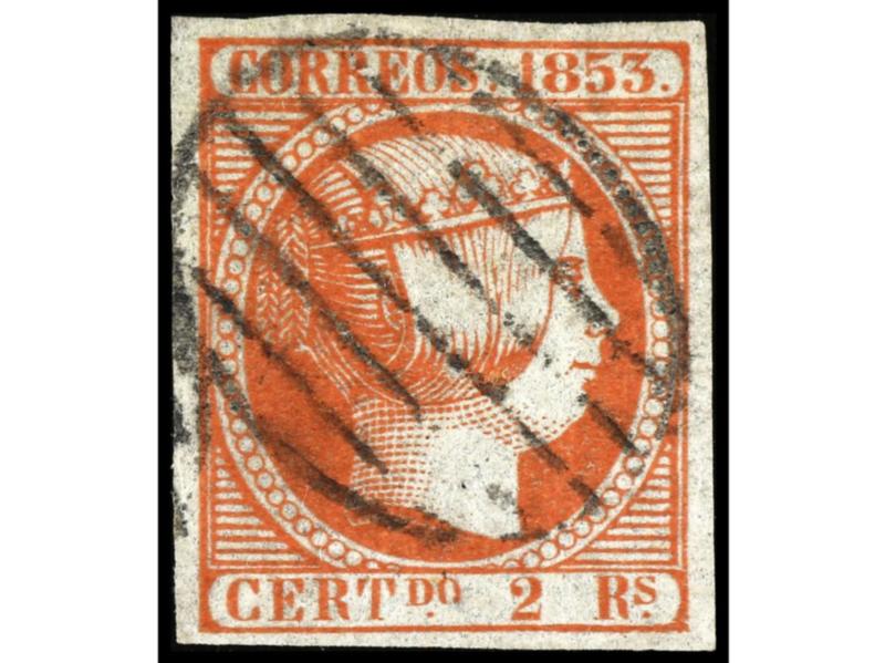 ESPAÑA. 2 reales naranja. Color intenso. MAGNÍFICO EJEMPLAR. Cert. GRAUS. Ed.14. Cat. 4.800€.