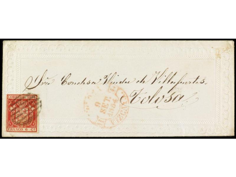 PERU. 1854. TOLOSA correo interior. 6 cuartos rojo en sobre ornamentado tipo ´Valentine´ (muy raro su uso en España). Muy interesante carta circulada por correo interior antes de la creación de la tarifa especial el 1-Nov-54. Ed.24.