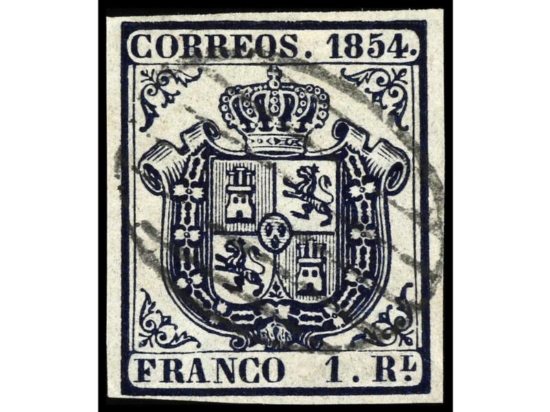 ESPAÑA. 1 real azul. Muy bonito. Ed.34. Cat. 310€.