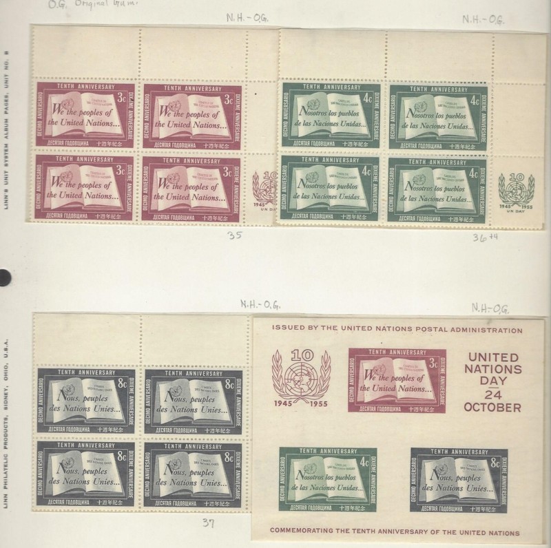 UNITED NATIONS, #1-42, C1-C8, 1951-56 Period, 49 Diff. Inscription Blks. + #38 (Souv. Sheet), Sound Cond., OG, MNH, F-VF, Includes Some Additional Stamps & Blks.