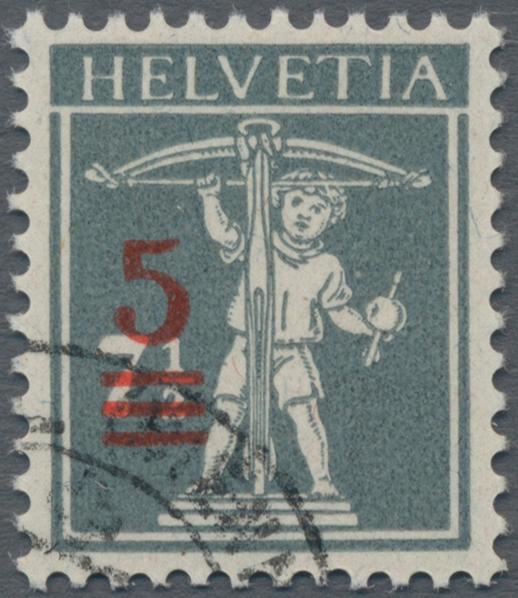 1921 Aufbrauchsausgabe Tell 5 auf 7½ Rp. grau in TYPE III, gefälligkeitsgestempelt mit Teilabschlag des Datumstempels "BIEL (BIENNE) 3, (-1.VIII.32.-7 BRIEFPOST)", in tadelloser Erhaltung und Originalgummi, Attest Renggli (2007) (SBK 9500,- Fr.)