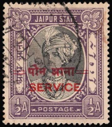 1948 ½a black & violet surcharged paun anna (quarter anna) in Devanagri in red overprinted SERVICE in red US$0