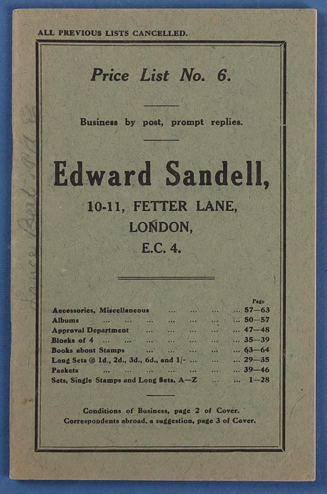 1926 Edward Sandell (London) Price List No Six, 64 pgs. Excellent condition inc order forms. (Image1)