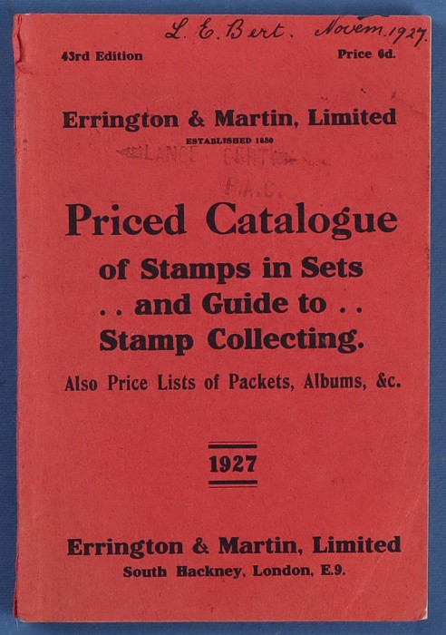 1927 Errington & Martin (London) Priced Catalogue of Stamps in sets. 118 pgs. VGC. (Image1)