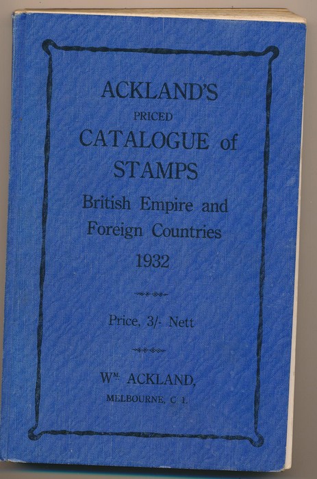 1932 Acklands Priced Catalogue of British Empire & Foreign Country Stamps. 196 pgs, illustrated throughout. A rare pre-WWII Australian produced World Stamp Catalogue. VF. Very scarce philatelic history. (Image1)