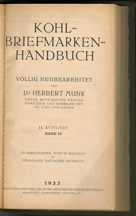 1933 World: Kohl, Briefmarken-Handbuch (World Catalogue) , Vol 4 Gross Britain, post in Marokko - Heligoland. German text. VGC. (Image1)
