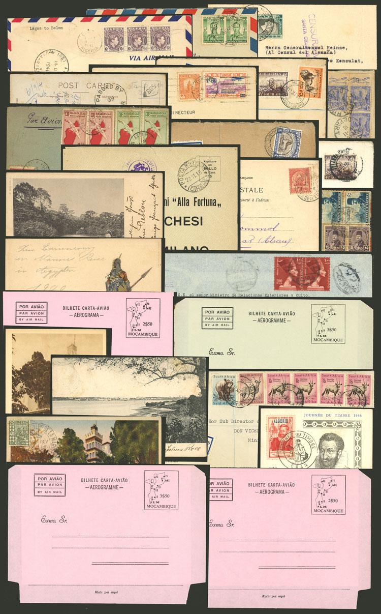 AFRICAN COUNTRIES: 25 Used covers, postcards, postal stationeries, etc. of various countries and periods, several of high individual value, good opportunity at low start! IMPORTANT: Please view ALL the photos of the lot, because all the material has been scanned. (Image)