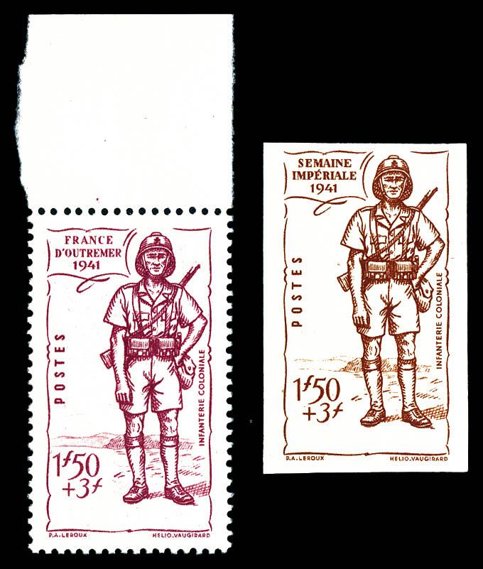 N°88a/b, 1f 50 +3f: sans nom du territoire et ex non dentelé sans légende, les 2 valeurs SUP (certificat) Qualité: ** Cote: 680 euros (Image)