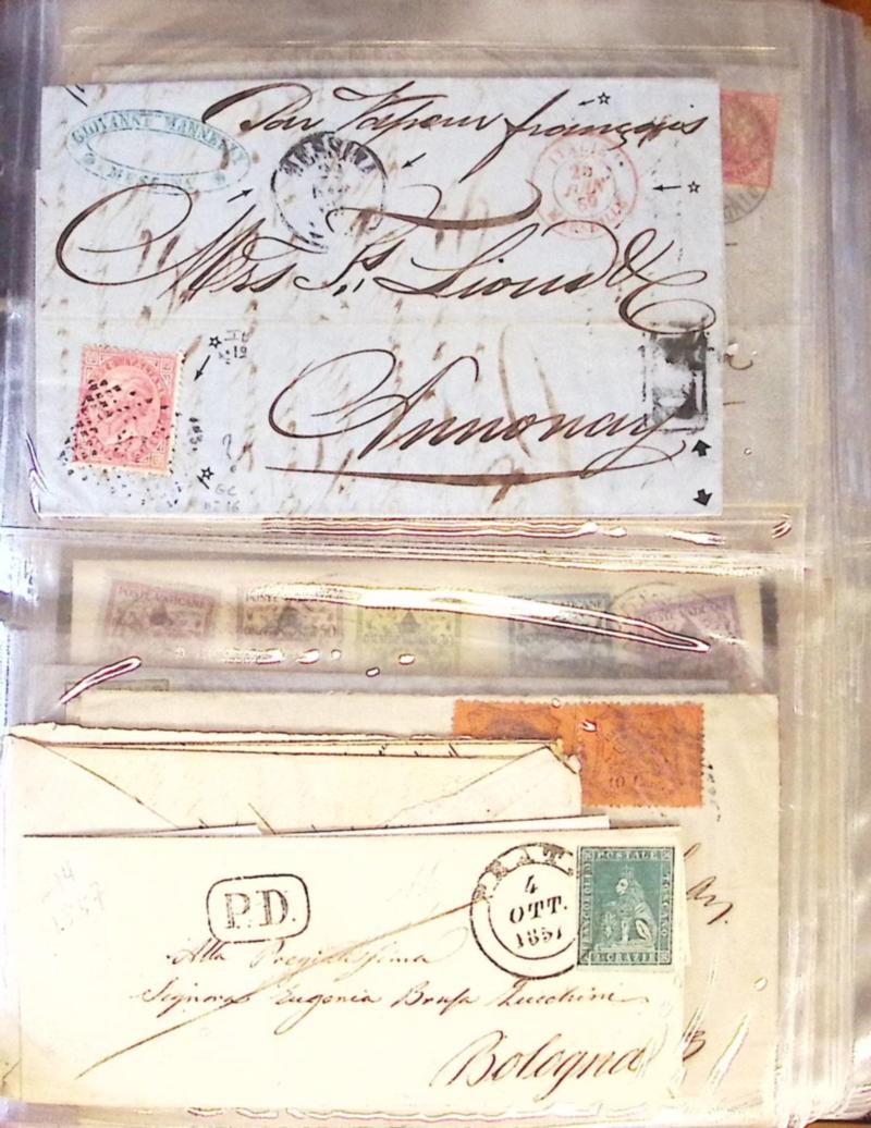 1777-2013, lot en deux parties : une collection d'ITALIE (1850-2013) en 6 classeurs ; 5 classeurs de lettres de FRANCE (1777-1907), dont nombreuses préphila et classiques ; plus un classeur de 1er jour du VATICAN et 4 livres philatéliques (Image)
