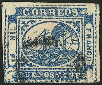 GJ.17A, 1P. indigo blue, splendid example with huge margins and very good color, light mute "6x6 dotted" cancel of San Nicolás, superb quality! (Image)