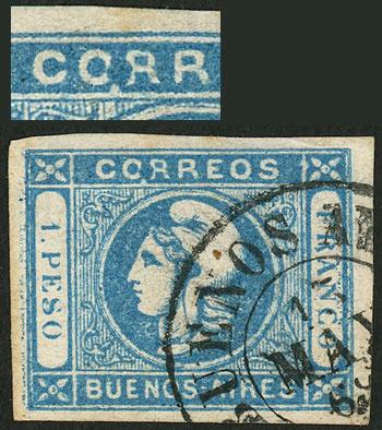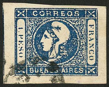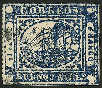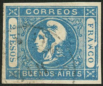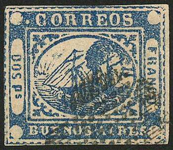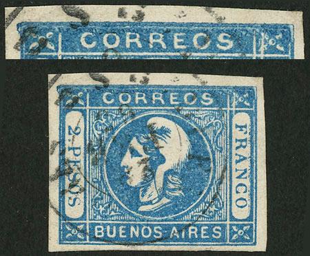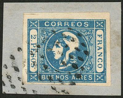 GJ.20, 2P. blue, clear impression, beautiful example of great quality on a fragment with mute "dotted ellipse" cancel of B.Aires, excellent! (Image)
