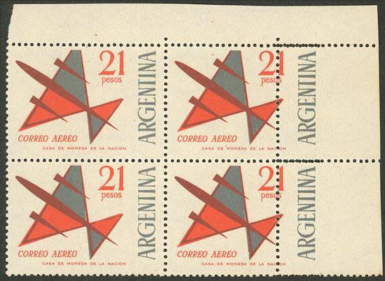 GJ.1256, 1963 21P. Stylized airplane, block of 4, the right stamps with shifted perforation, they are much narrower, excellent variety, rare! (Image)