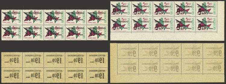 GJ.1699/1700, 1975 Revalorizados, blocks of 10 with OFFSET IMPRESSIONS OF THE OVERPRINTS on back, excellent quality! Catalog value of 10 normal sets US$60 (Image)