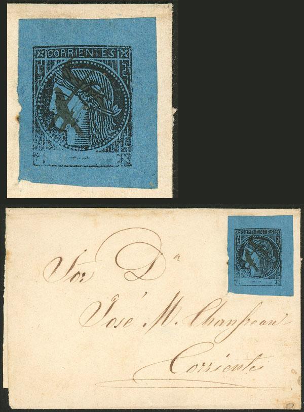 GJ.3, blue, type 7, ample margins, with pen cancel of San Antonio, franking a folded cover sent to Corrientes, VF quality! NOTE: At the buyer's request, we can provide a certificate of authenticity. (Image)