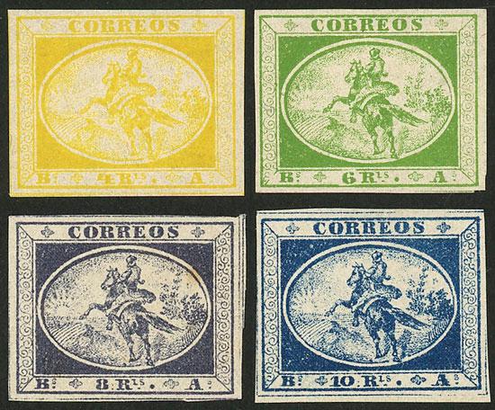 GJ.1/4, 1857 Post rider, complete set of 4 values, mint with light hinge marks, excellent quality! (Image)