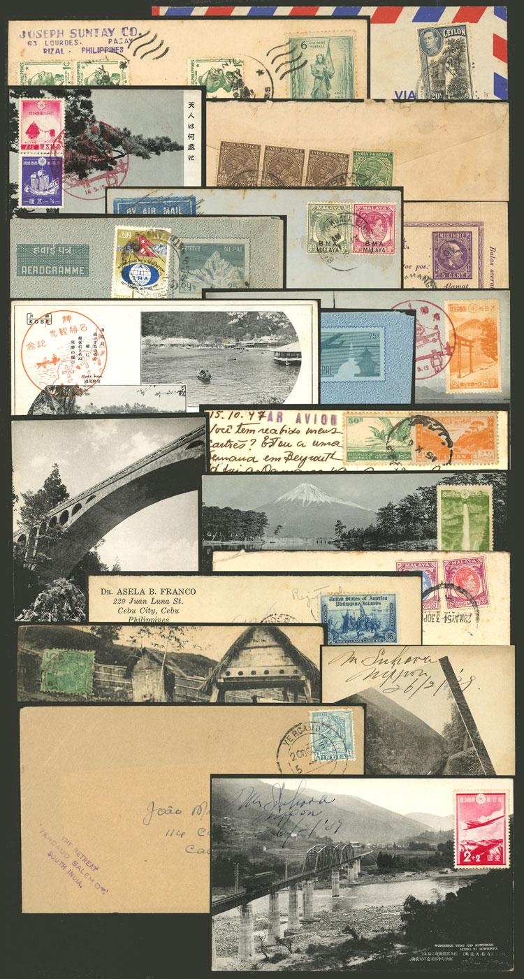 ASIAN COUNTRIES: 19 Used covers, postcards, postal stationeries, etc. of various countries and periods, several of high individual value, good opportunity at low start! IMPORTANT: Please view ALL the photos of the lot, because all the material has been scanned. (Image)