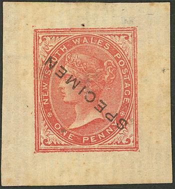 Cut square of old 1p. postal stationery with inverted "SPECIMEN" overprint, very attractive! (Image)