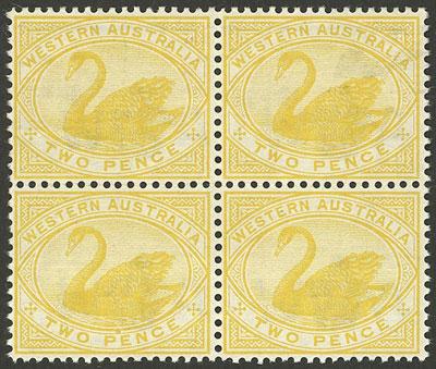 Sc.74, 1899/1901 Swan 2p. yellow with watermark "V - Crown", MNH block of 4 of excellent quality! (Image)
