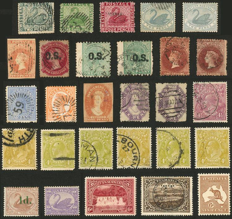AUSTRALIAN STATES: Interesting lot of stamps, used or mint (probably without gum), in general of fine quality (unchecked, some can have small defects), low start! (Image)