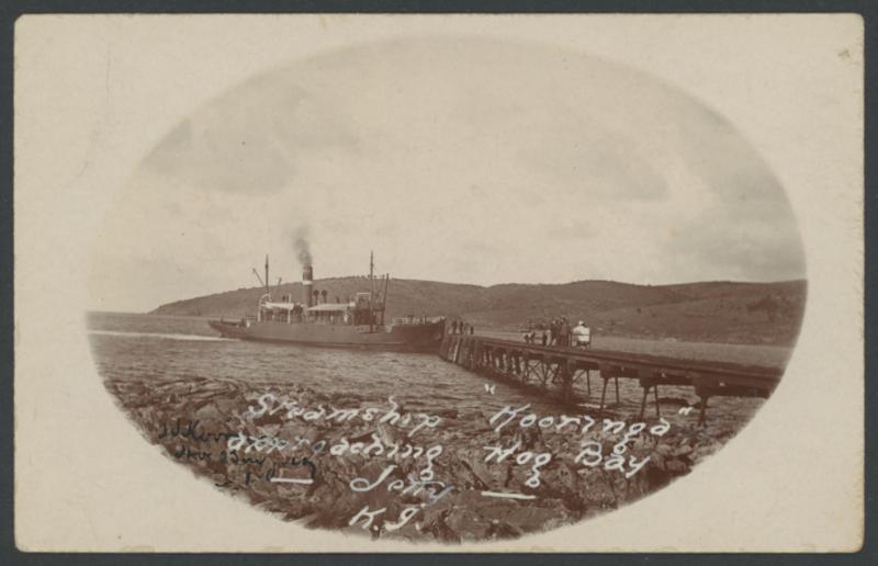 SOUTH AUSTRALIA: Kangaroo Island group featuring ships & jetties at Hog Bay x3 (one a real photo type) or Kingscote x7, 1910 real photo Penneshaw multi-view card, and ship "portraits" of 'Karatta' & 'Troubridge', very fine.