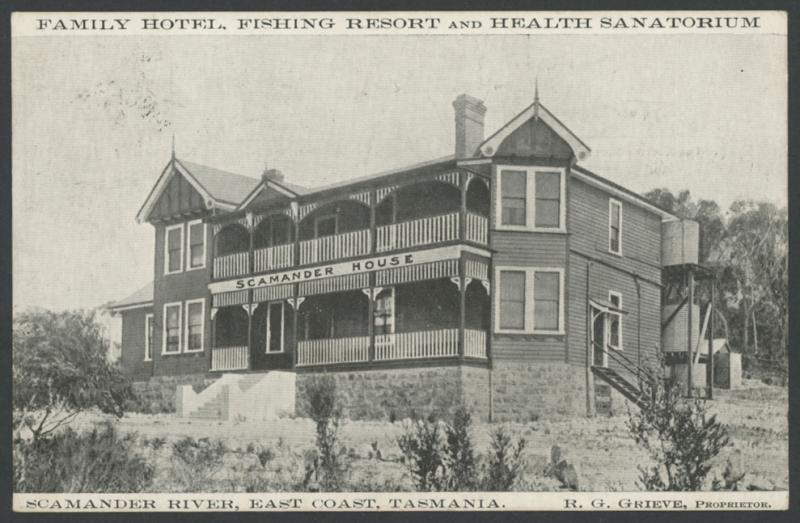 TASMANIA: Mounted collection of cards (116) from the East & North-East of the State mostly topographicals with lots of beauty spots, towns, mining including 1908 Franco British Exhibition 'Hydraulic Tin-Sluicing', 1950s Rose group & a 1906 advertising card for a guest house at Scamander; plus probably 150+ modern tourist PPCs of the same region.