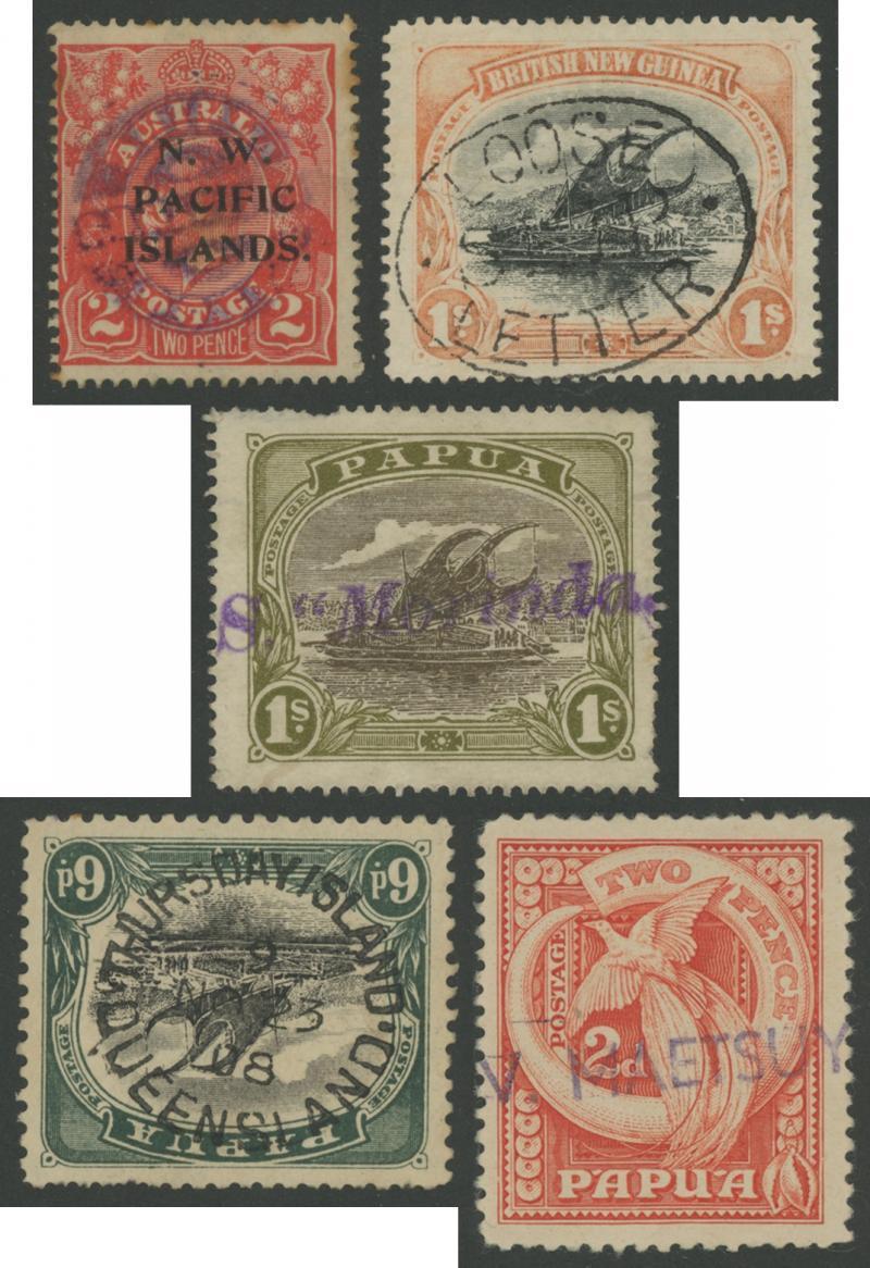 Collection of mostly Papuan plus some New Guinea ship cancels & paquebot markings including Dutch ship cancels x12, several Burns Philp ships, plus a duplicated array of stamps cancelled in transit at Australian ports including Thursday Island & with many of the Queensland 'SHIP/LETTER/TYPES', also Australian Paquebot cds & machine types, condition variable but could be developed into a significant collection. Ex John Gibson.