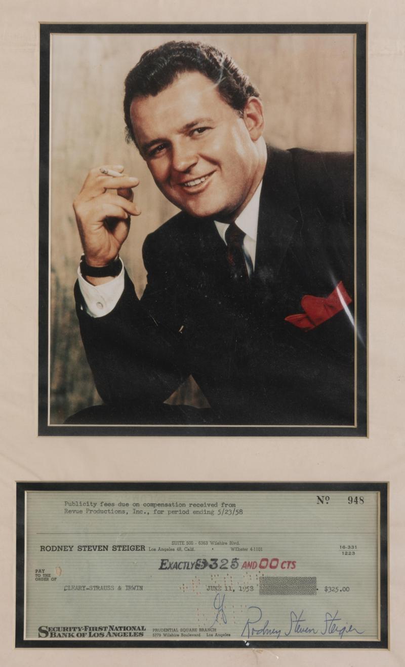 Signed displays George Foreman signature on piece mounted with photo; Raquel Welch signed photograph; Rod Steiger signed cheque mounted with photo, mainly Fine.