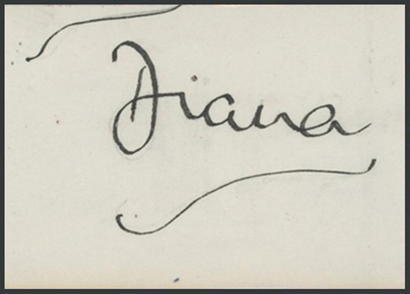 DIANA, PRINCESS OF WALES "Diana" on piece cut from letter. [Our vendor first met Diana in 1967, and again twice in the 1980s] (Image1)
