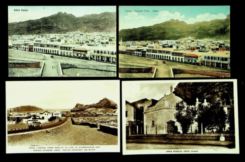 Aden 4 unused PPC depicting Army Camp + Mosque + Road from Maalla Village to Khormaksar (Image)