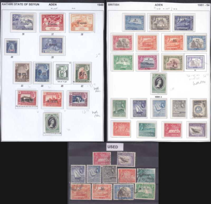 Aden Kathiri State of Seiyun 1949-54, UPU QE II Coronation 45v MH/used stamp collection (Image)