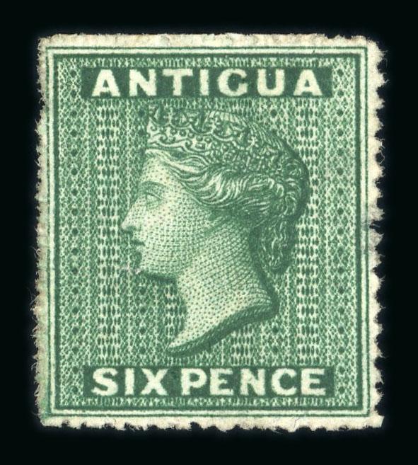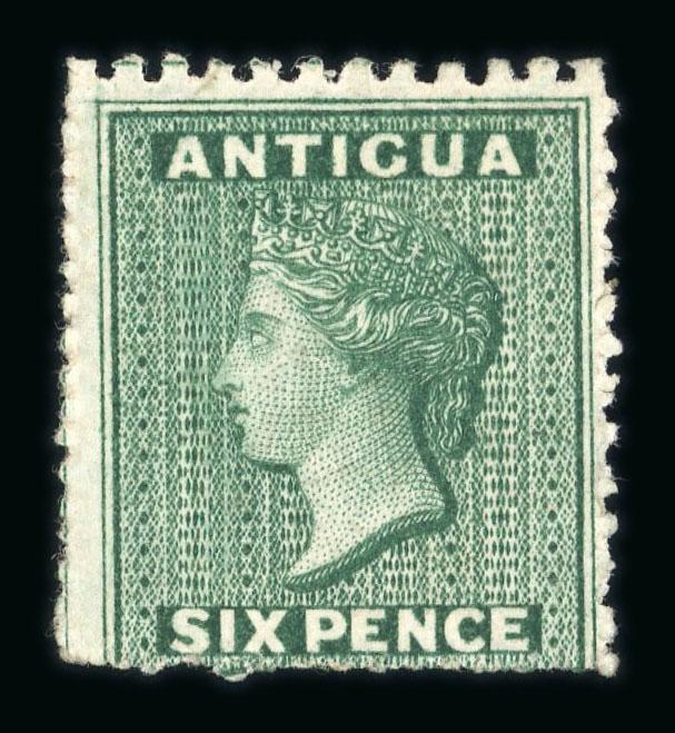 1862 6d blue-green, unused with original gum and hinge remnant, with compound perforation (14 to 16 at left and foot; 11 to 12 1/2 at top and right). A lovely example of this scarce compound perforation (thought to be a trial perforation and not known in used condition), with excellent colour (SG £3250); with certificate Friedl 1976 (showing an original horizontal pair of which this is the left stamp). (Image)