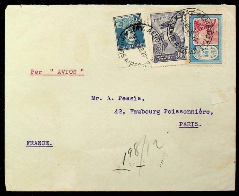 Argentina 1930 3v on airmail cover from Buenos Aires to Paris France (Image)