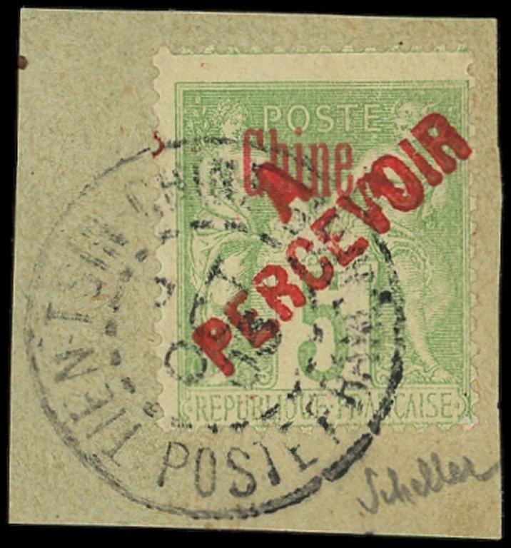 Taxe 13 : 5c. vert-jaune obl. TIEN-TSIN ( )/10/03 s. fragt, TB. S (Image)