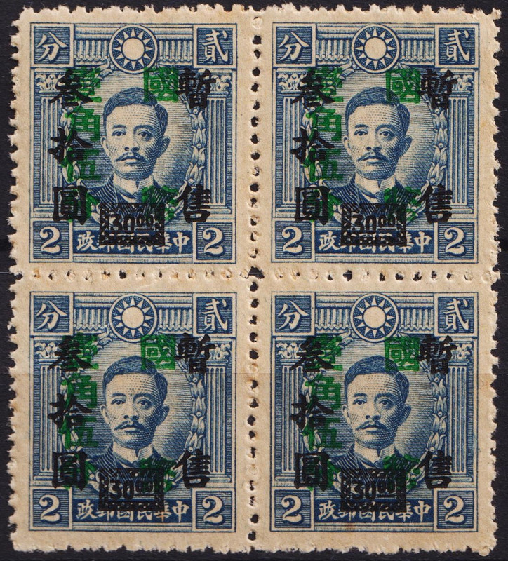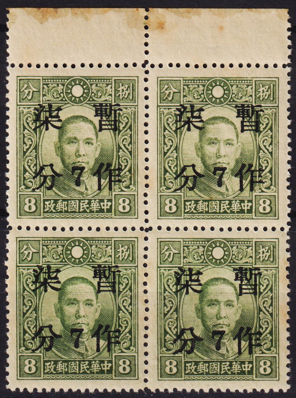 China. Block China Stamps - 1941, Fukien Surcharged overprinted Scott 484h7 MNH