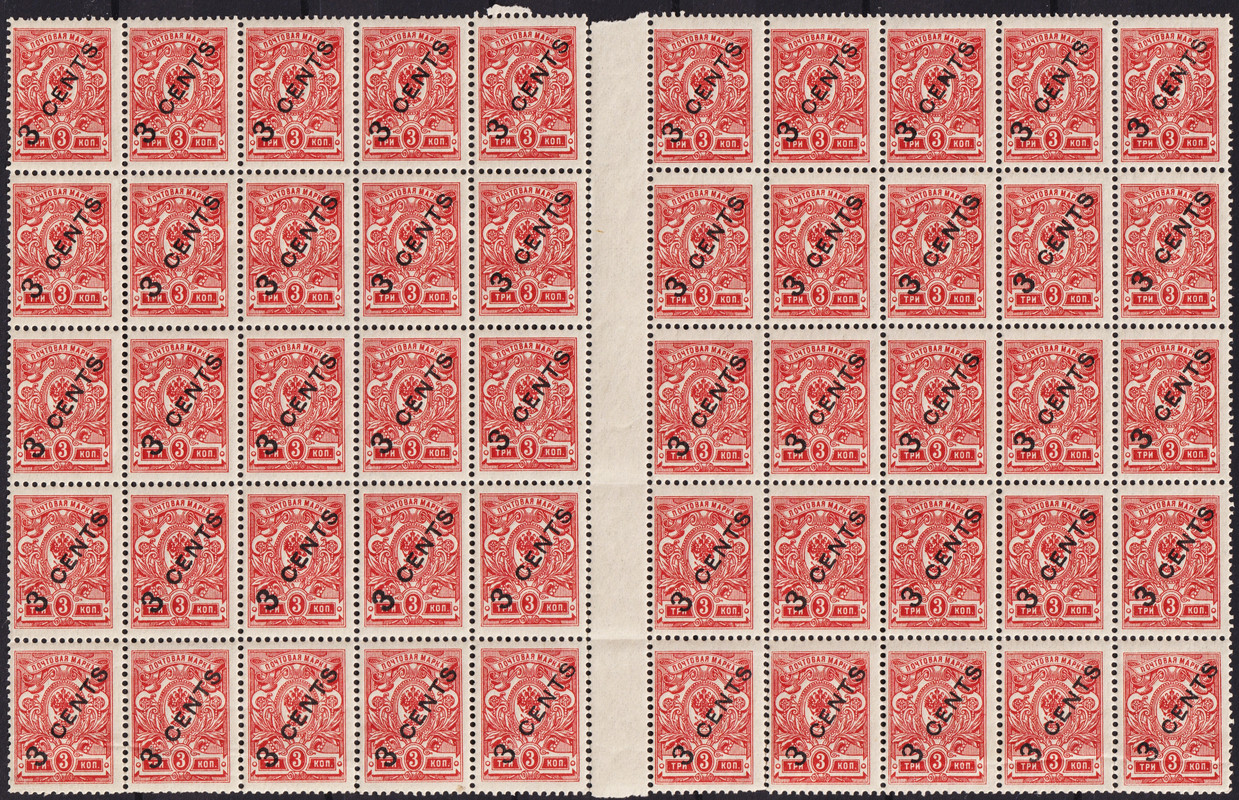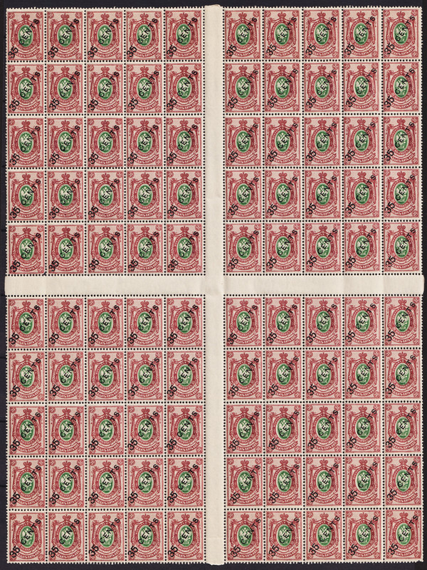 China. China - Russian Post Office 1917 Sheet Russian eagle Overprint 35 cent Scott RU-CH 60 MNH
