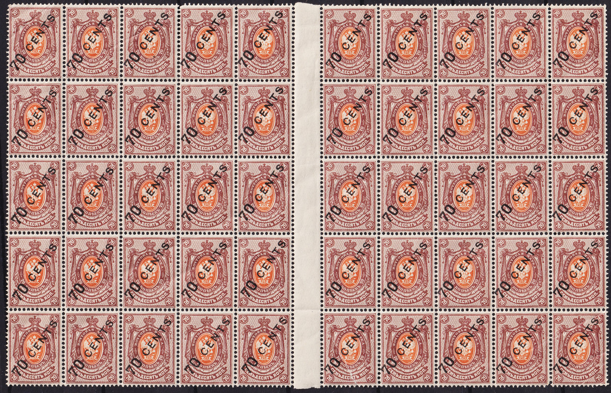 China. Sheet 1917 China - Russian Post Office 70 c Overprint Russian eagle Scott RU-CH 62 MNH