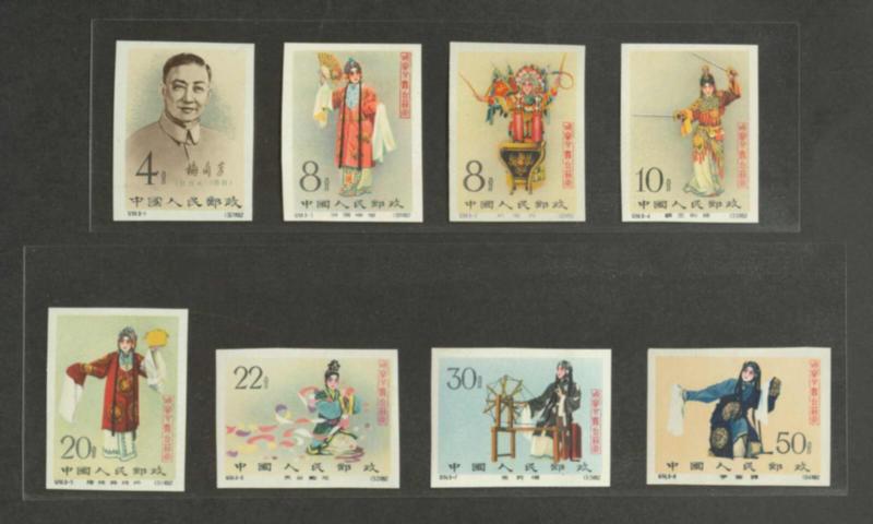 VOLKSREPUBLIK CHINA - Mei Lan Fang 1962, die komplette Serie zu acht Werten geschnitten postfr., teils leichte Fingerabdrücke, drei Werte winzig getönt, zwei Werte geringe Gummibüge, eine außerordentlich seltene und gesuchte Serie, wundervoll farbfrisch und allseits perfekt gerandet. (Image)