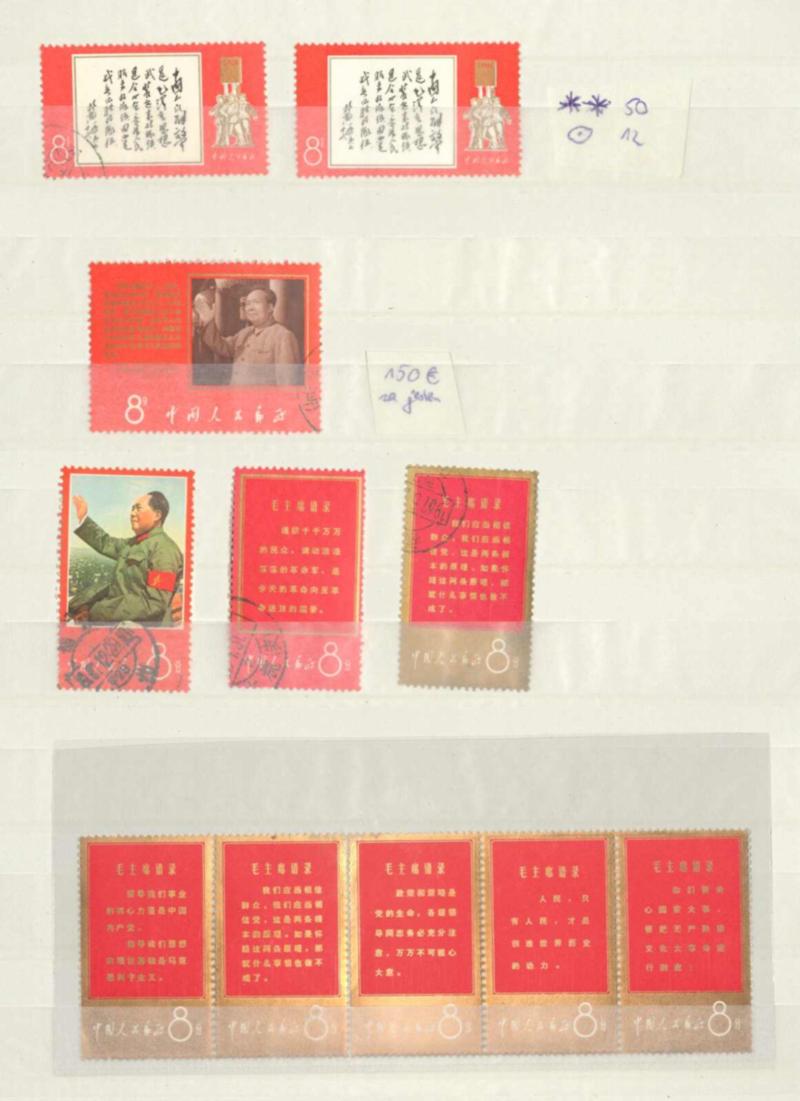 VOLKSREPUBLIK CHINA - reichhaltige Partie in zwei großen Einsteckbüchern mit vielen gesuchten Ausgaben, vorwiegend in postfr. Erhaltung, dabei ein starker Teil sechziger Jahre mit besseren Ausgaben, teilweise mehrfach, der seltene Fünferstreifen "FÜNF NEUE DIREKTIVEN MAOS" von 1968 nahezu postfr. (zwischen der 3. und 4. Marke vorgefaltet) und nochmals mit Gefälligkeitsstempel (ebenfalls zwischen der 3. und 4. Marke vorgefaltet) etc. Unbedingt besichtigen und kalkulieren! (Image)