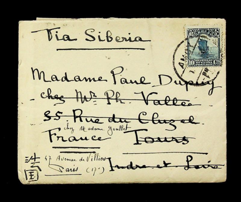 China 1929 10c on cover via Siberia redirected to Paris France (Image)