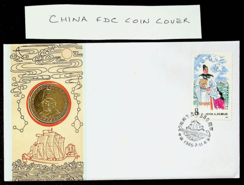 China 1985 8f 580th Anniversary of Zheng He's Expedition to the West Seas commemorative FDC inlaid w/ Bronze Medal (Image)