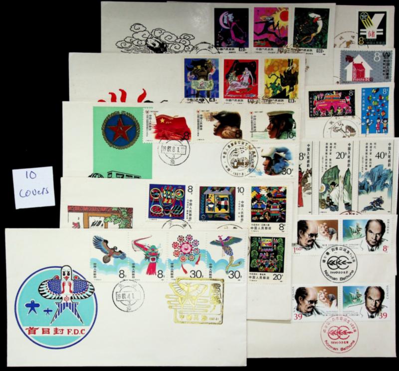 China 1987-90 set of 10 variously illustrated commemorative FDC w/ special pictorial native cancels (Image)