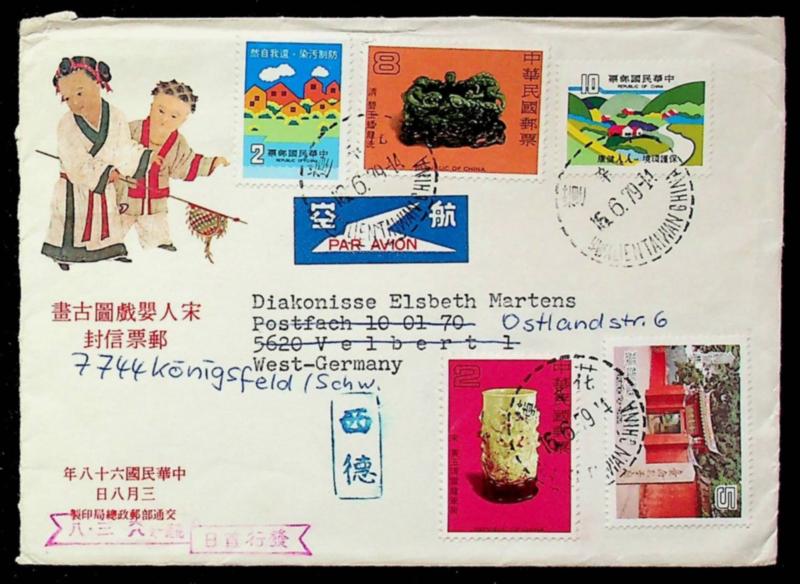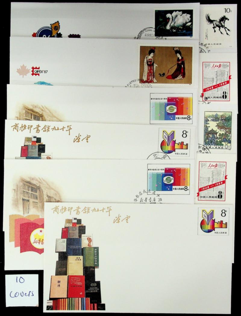 China 1986-88 set of 10 illustrated commemorative covers w/ special pictorial native cancels/ few unused envelopes (Image)