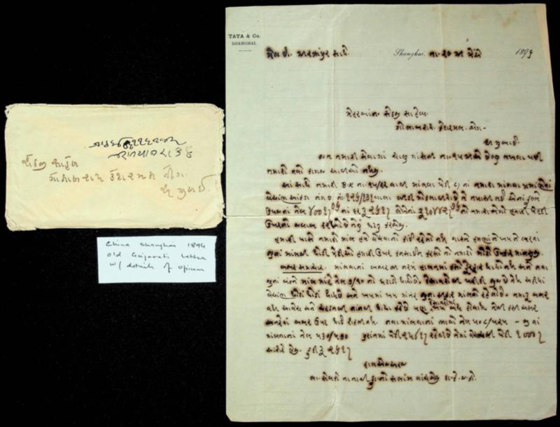 China Shanghai 1894 old letter in Gujarati Language with details of opium+ cover (Image)