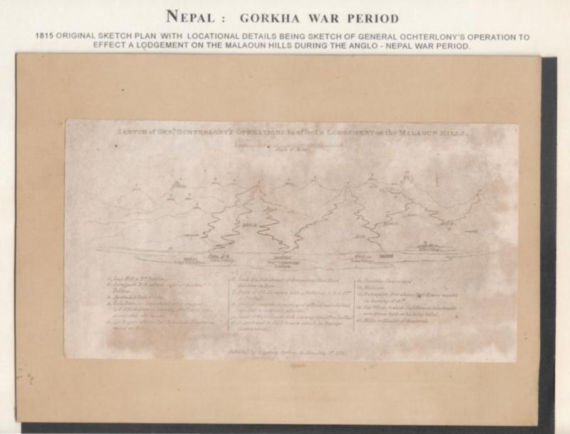 Nepal Gorkha War Period 1815 Original Sketch Plan with Locational details of General Ochterlony's Operation to Effect A lodgement on the MALAOUN HILLS During the Anglo Nepal War - UNIQUE - Ex. Gupta (Image)