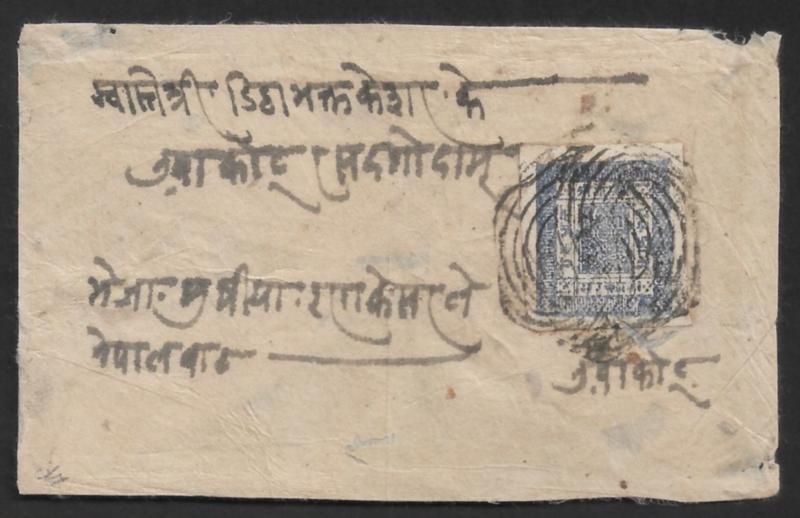 Nepal 1881 1st Printing, on European paper, 1a blue, setting 2, outstanding cover from Kathmandu to TRISULI w/ postal markings. Ex. Hellrigl & Frajola - Harmers Lot #113 (Image)