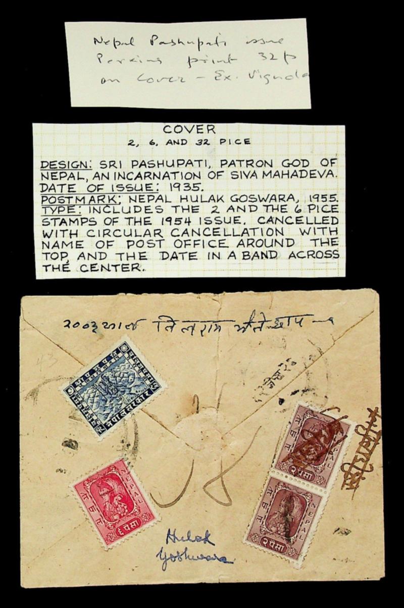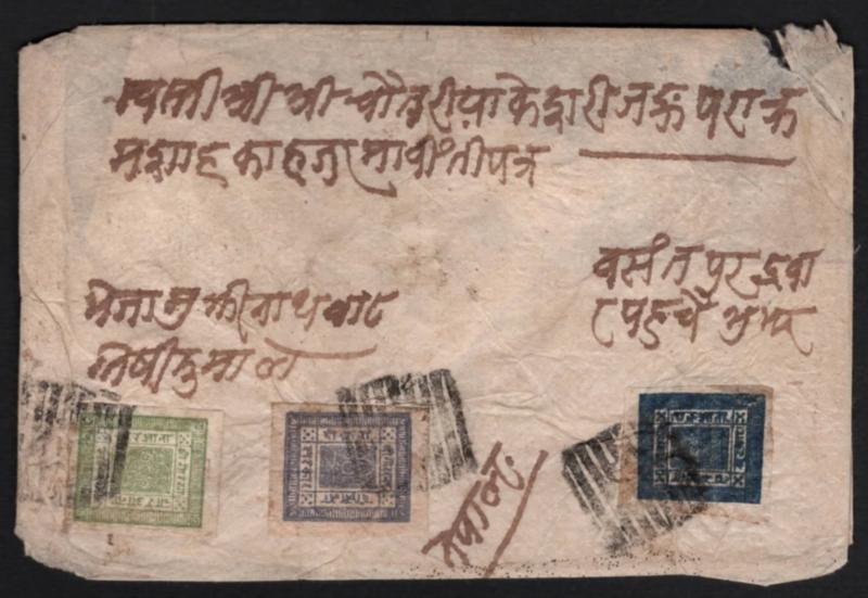 Nepal Classic Issue 3v franked cover 1a, 2as & 4as - Rare usage w/ wax seal on reverse (Image)