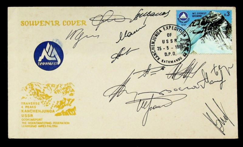 Nepal 1989 USSR Kanchenjunga Expedition Team signed souvenir cover w/ 3R (Image)