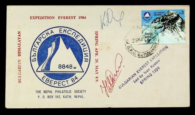 Nepal 1984 Bulgarian Mt. Everest Expedition variously signed cover w/ 3R & "Kathmandu GPO" cancel (Image)